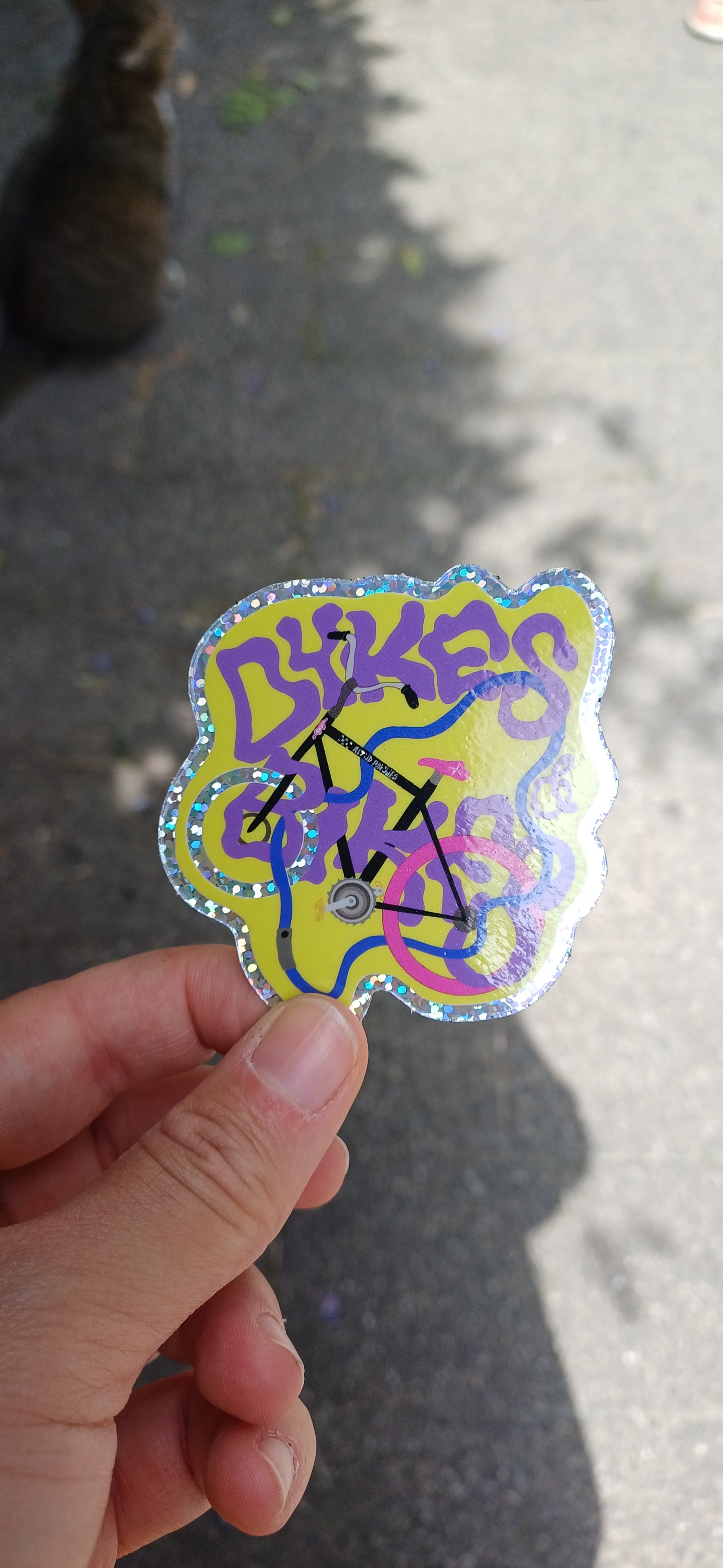 Because most of us, Dykes love bikes 🚲💖🌈Weather resistant stickers, strong as a vulva.